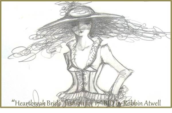 {Click for photos of Heartbreak Bride in my Flickr Archive} When I’m dreaming up a new doll outfit, I like to do sketches to work out details before cutting into special fabrics. The…